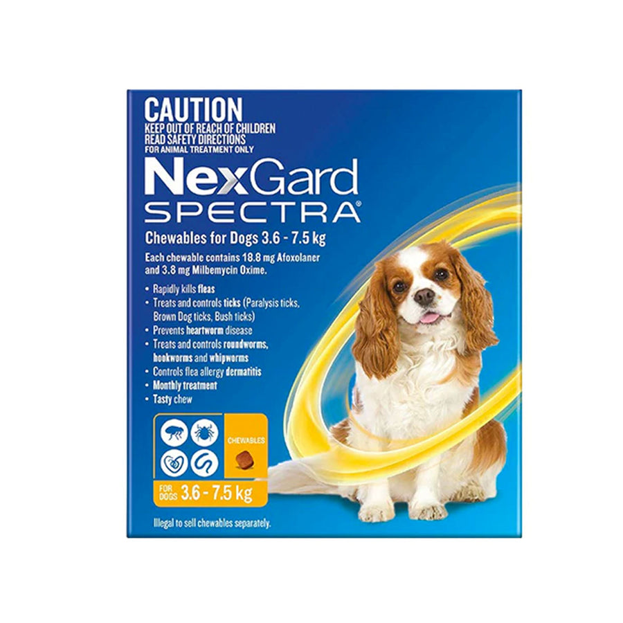 NexGard Spectra - Dogs 3.6-7.5kg - Tick, Flea, Heartworm, Gut Worms - 3 pack
