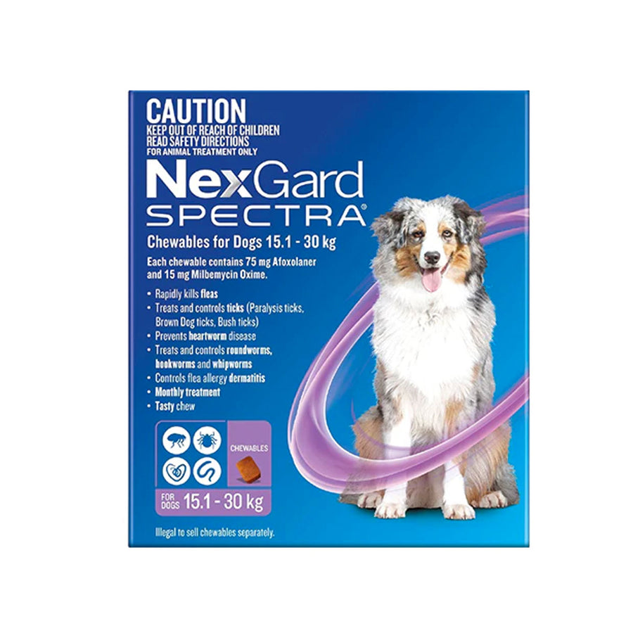 NexGard Spectra - Dogs 15.1-30kg - Tick, Flea, Heartworm, Gut Worms - 3 pack